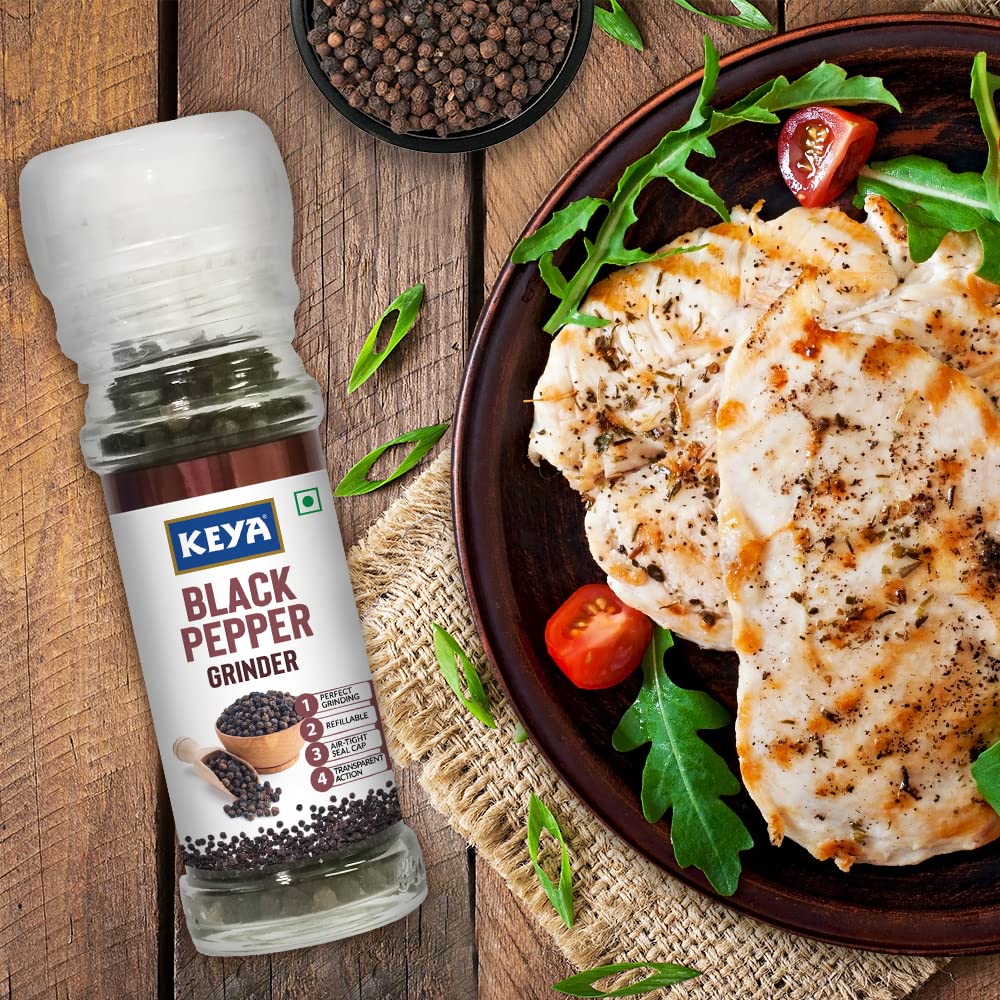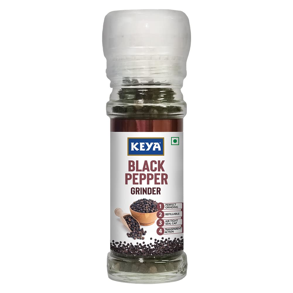 Keya brings to you premium and fresh Black Pepper Grinder that adds peppery Flavour to your food. Air tight, adjustable and moisture resistant grinding cap, Refillable bottle.