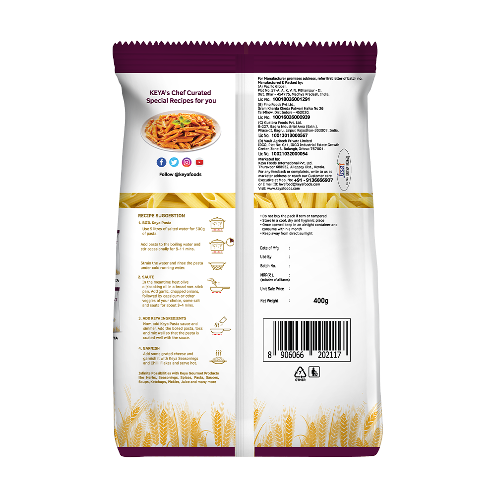 Discover the excellence of Keya 100% Durum Wheat Penne Pasta. Made from premium durum wheat, our penne pasta delivers a perfect al dente texture and authentic Italian taste. Ideal for crafting classic pasta dishes that will delight your palate. Elevate your cooking with Keya's premium quality pasta today.