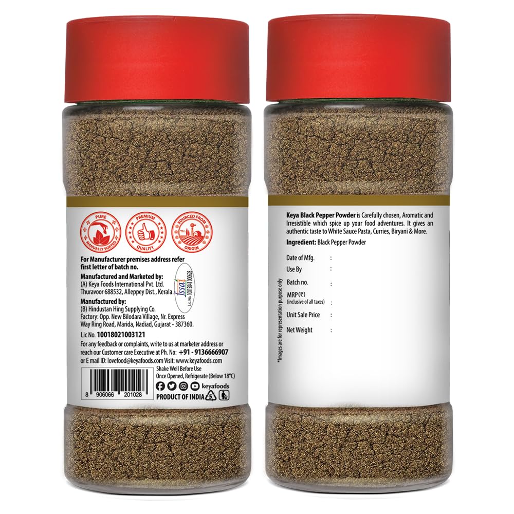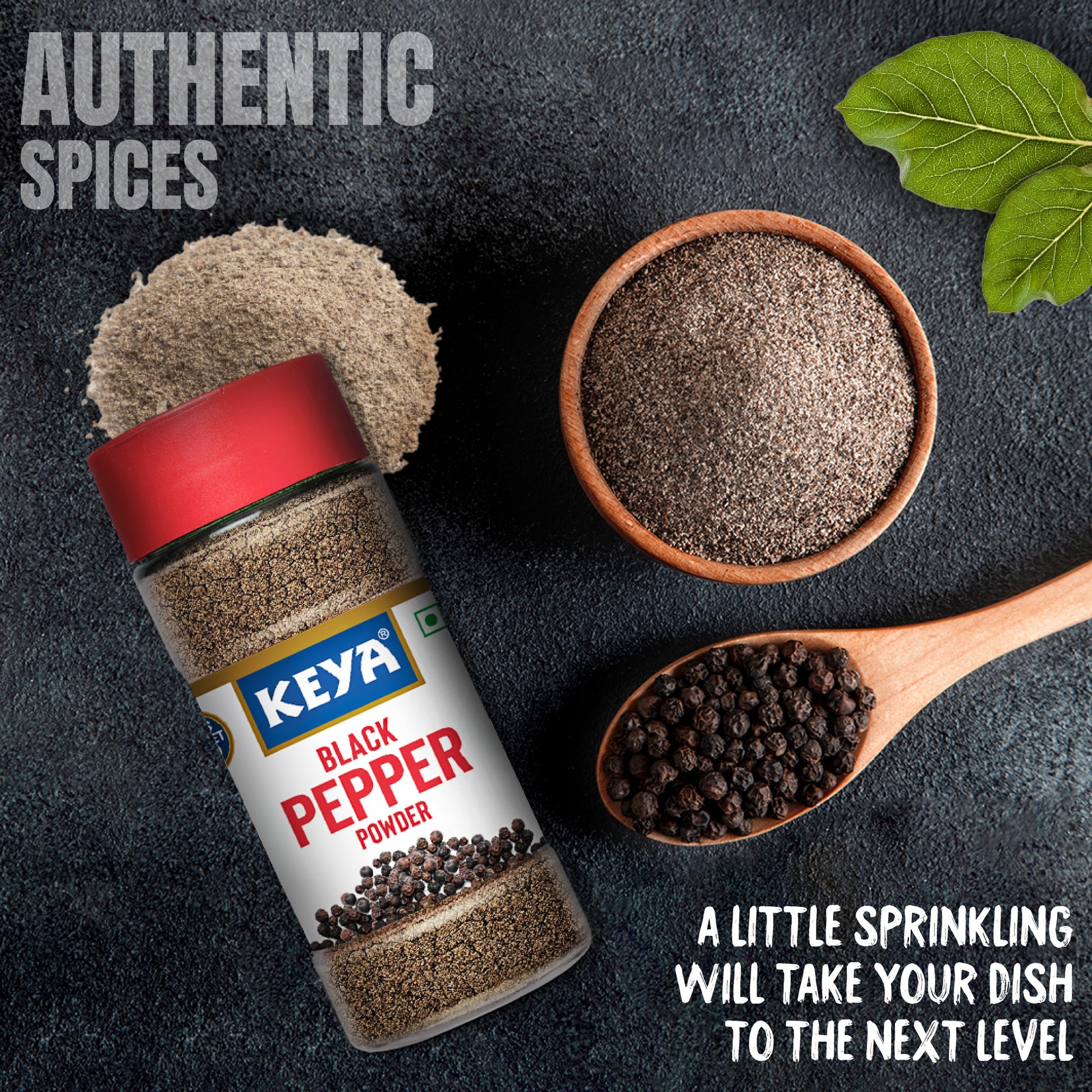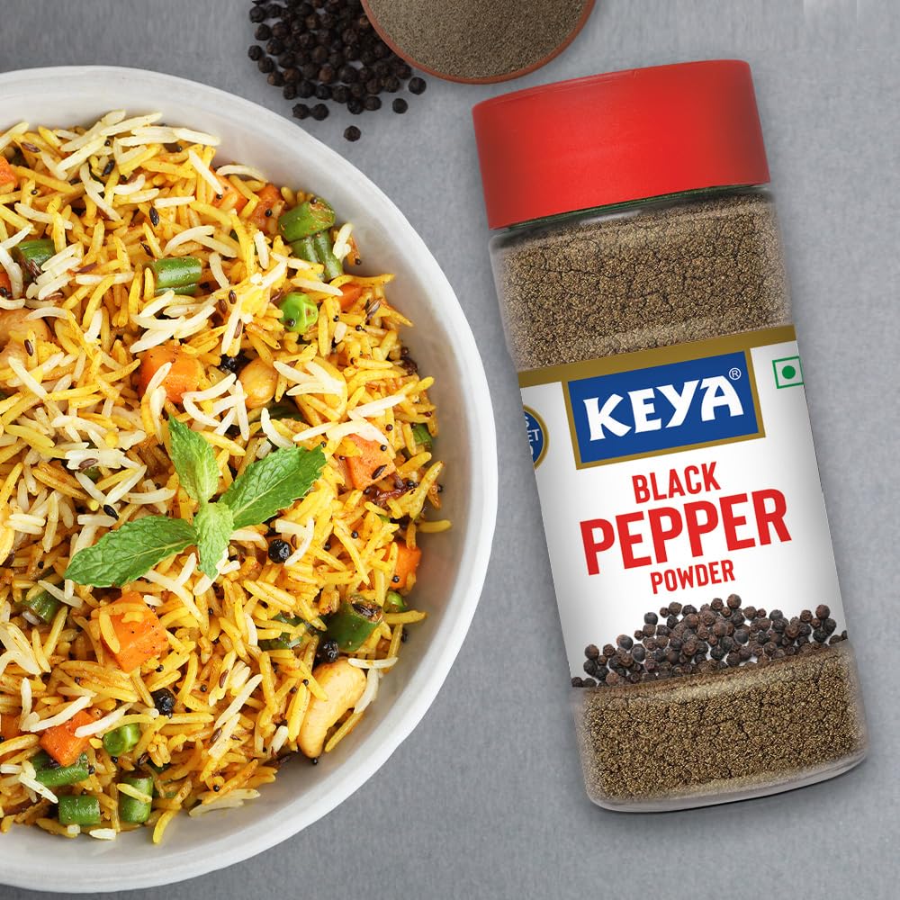Experience the bold and versatile flavor of Keya Black Pepper Powder. Sourced from premium peppercorns, our finely ground powder adds a distinctive kick to a wide range of dishes. Perfect for seasoning meats, vegetables, soups, and sauces, Keya Black Pepper Powder is the essential ingredient for adding depth and complexity to your recipes.