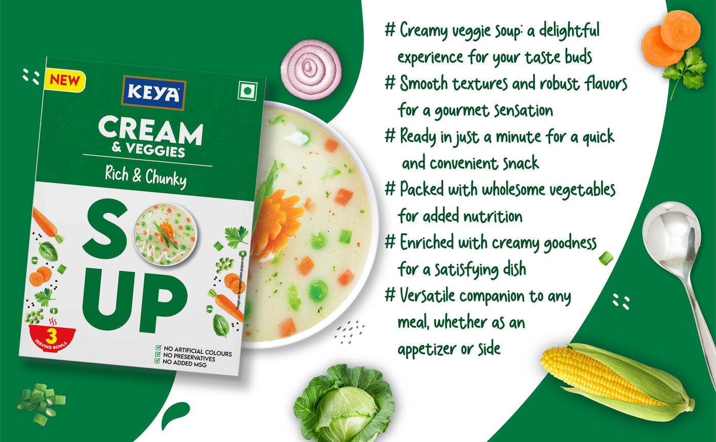 Enjoy delicious creamy veggie soup which is smooth and flavorful. It takes just a minute to make and serves as a perfect evening snack and a great companion to any meal