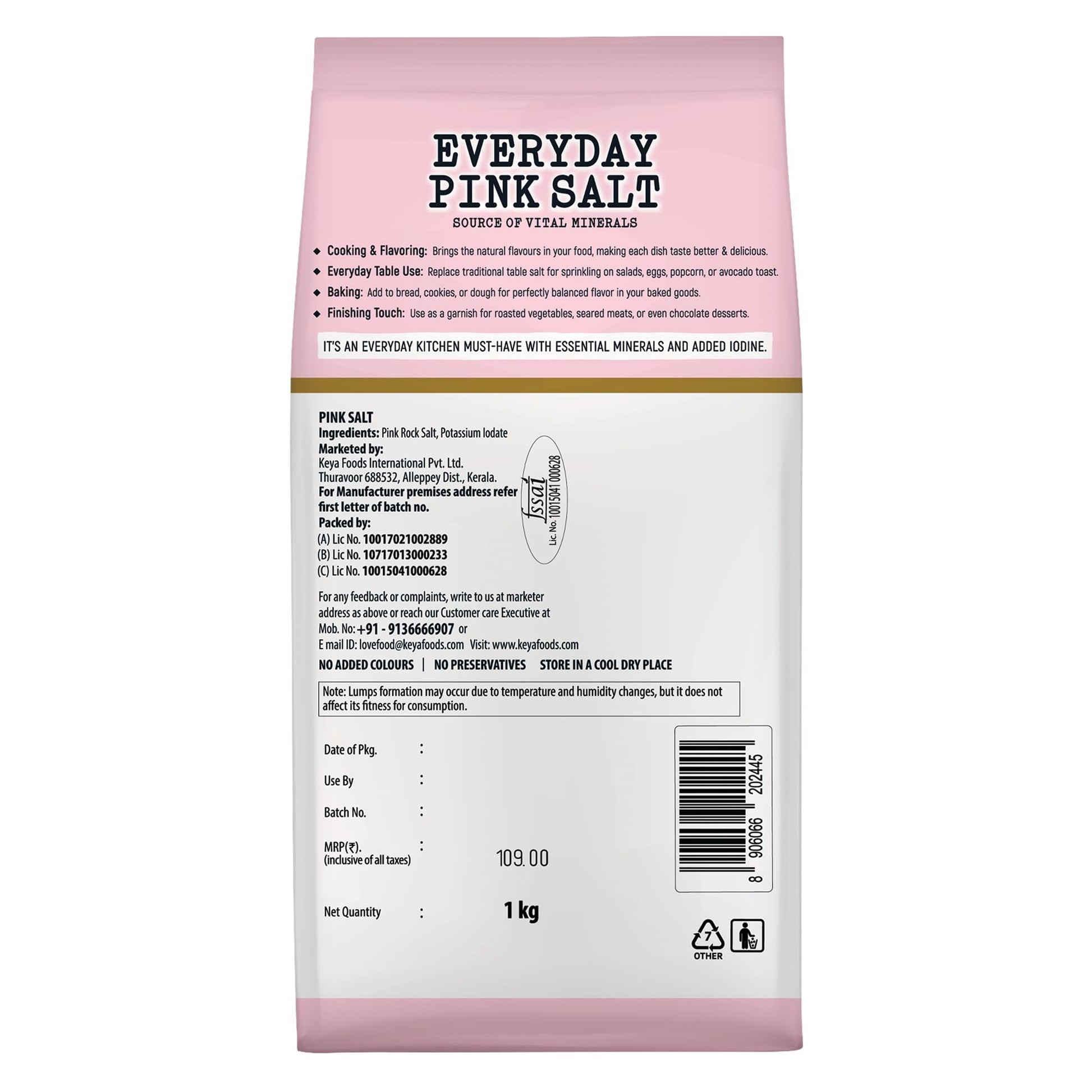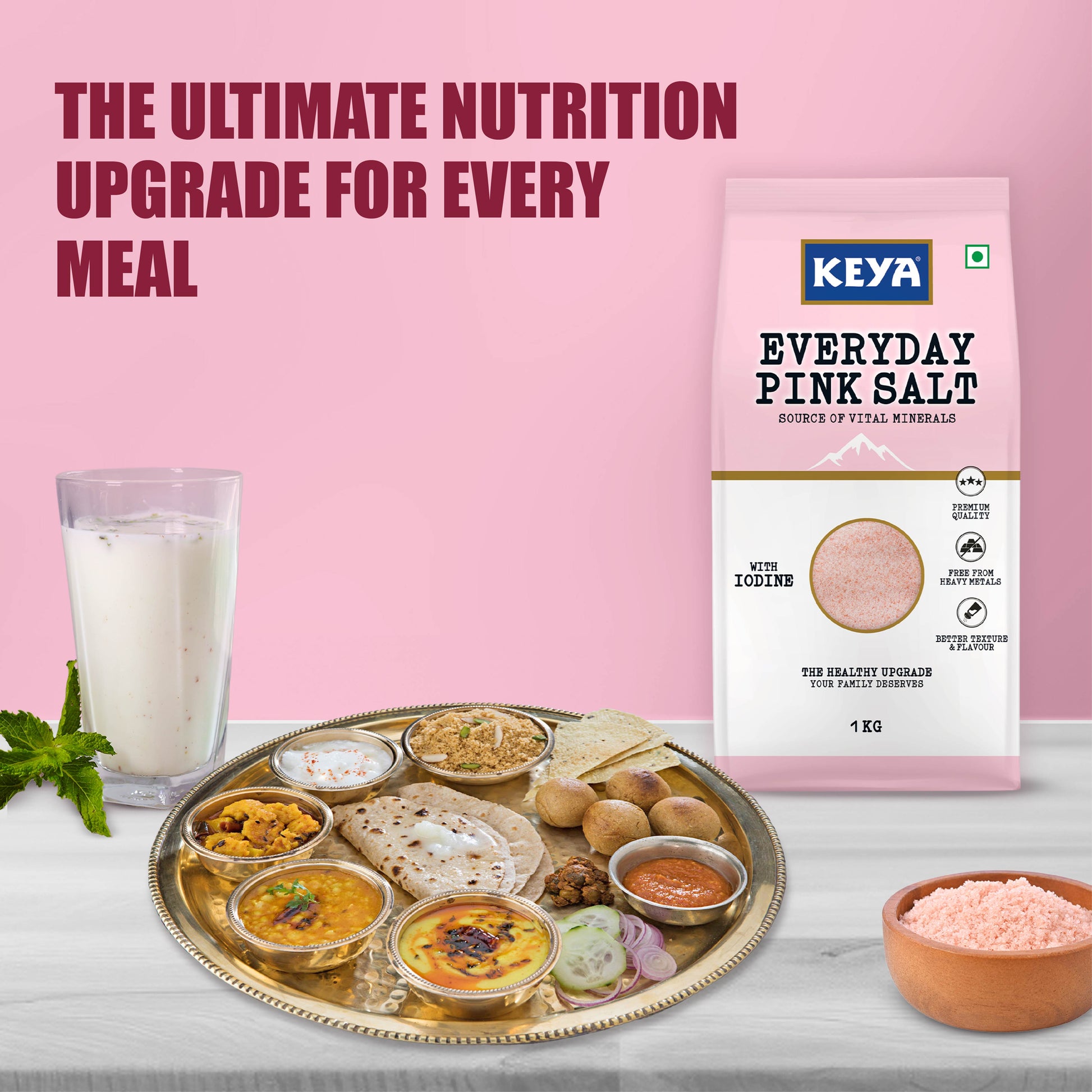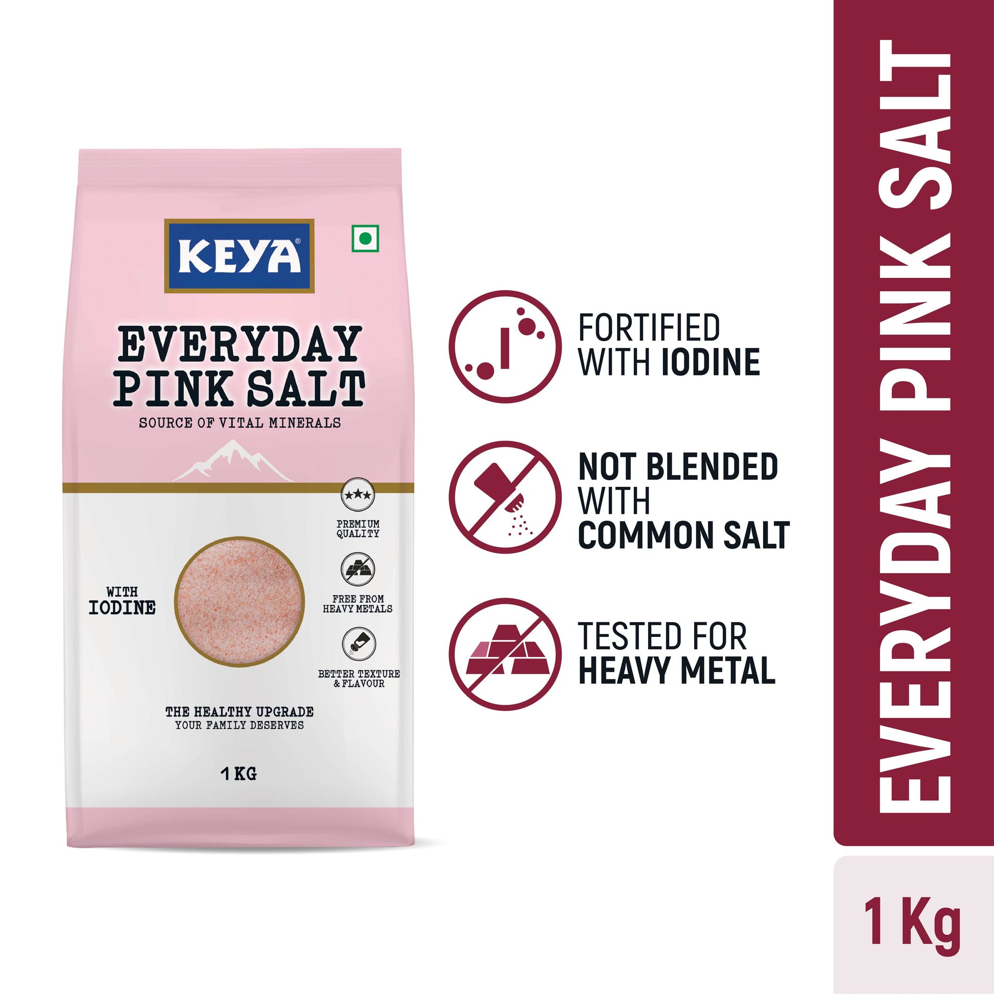 1) Keya Everyday Pink Salt is a daily kitchen must-have tested for heavy metals, packed with 80+ essential minerals and fortified with iodine.