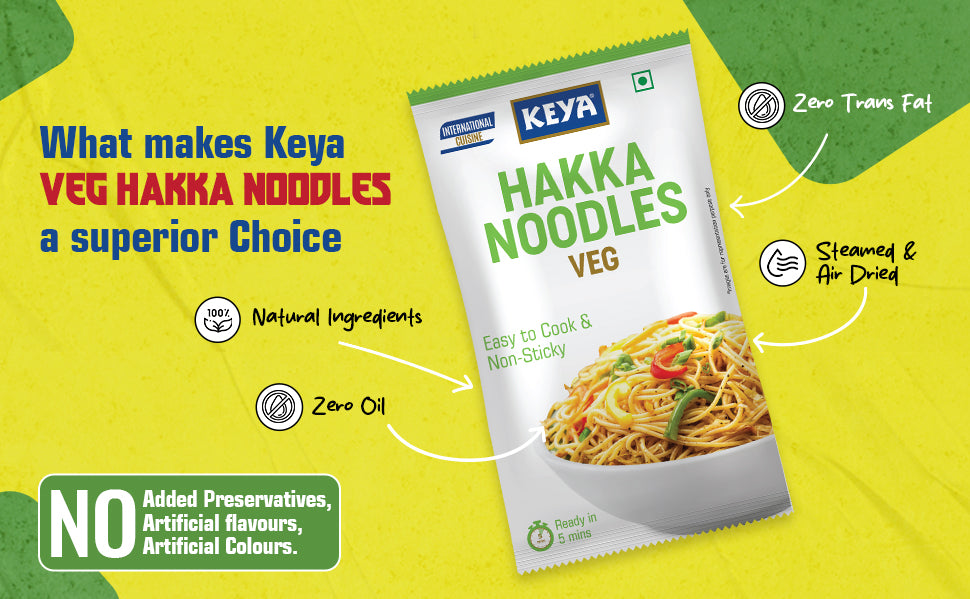 Keya's Hakka Noodles, a pantry essential, offers restaurant-style taste with all-natural ingredients, no preservatives, colours, zero oil and zero trans-fat.