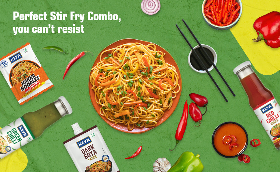 Pro Tip: Want to make it even better? Pair your noodles with any of Keya’s signature sauces—Keya's Red Chilli Sauce, Keya's Dark Soya Sauce, or Keya's Schezwan Chutney. You’ll have a quick, flavourful meal that’s both tasty and nutritious in no time! Whether you’re craving spicy stir-fried noodles, a savory noodle bowl, or just a quick fix for lunch or dinner, Keya's Hakka Noodles and sauces are the perfect match for your next meal!