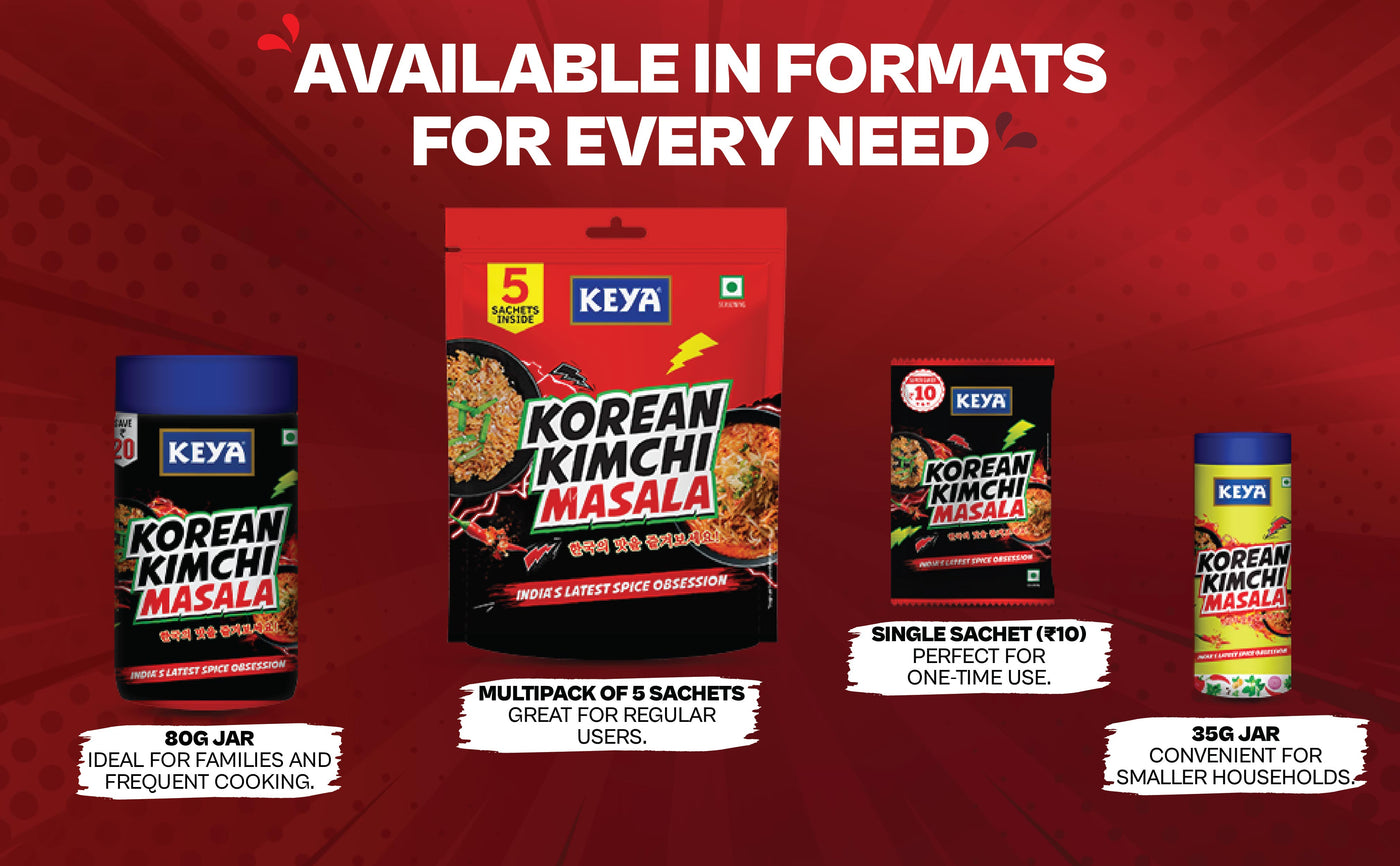 Keya' Korean Kimchi Masala is a fiery secret blend with a spice burst of sensational gochujang flavour.