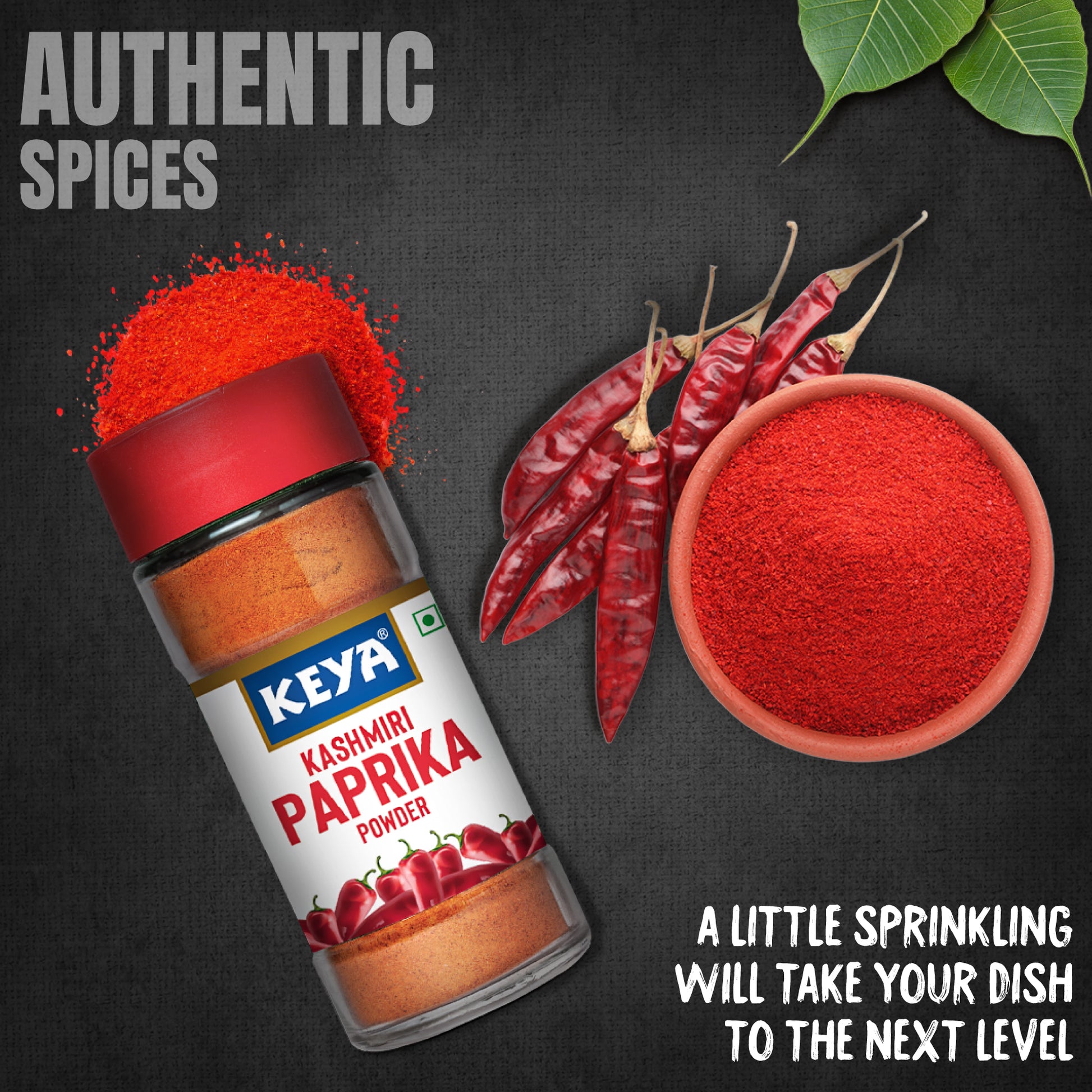 Keya Kashmiri Paprika Powder | Natural Vegetarian Dry Hot and Spicy Chili | Aromatic Seasoning | 100% Natural | Manually Sorted | 55g