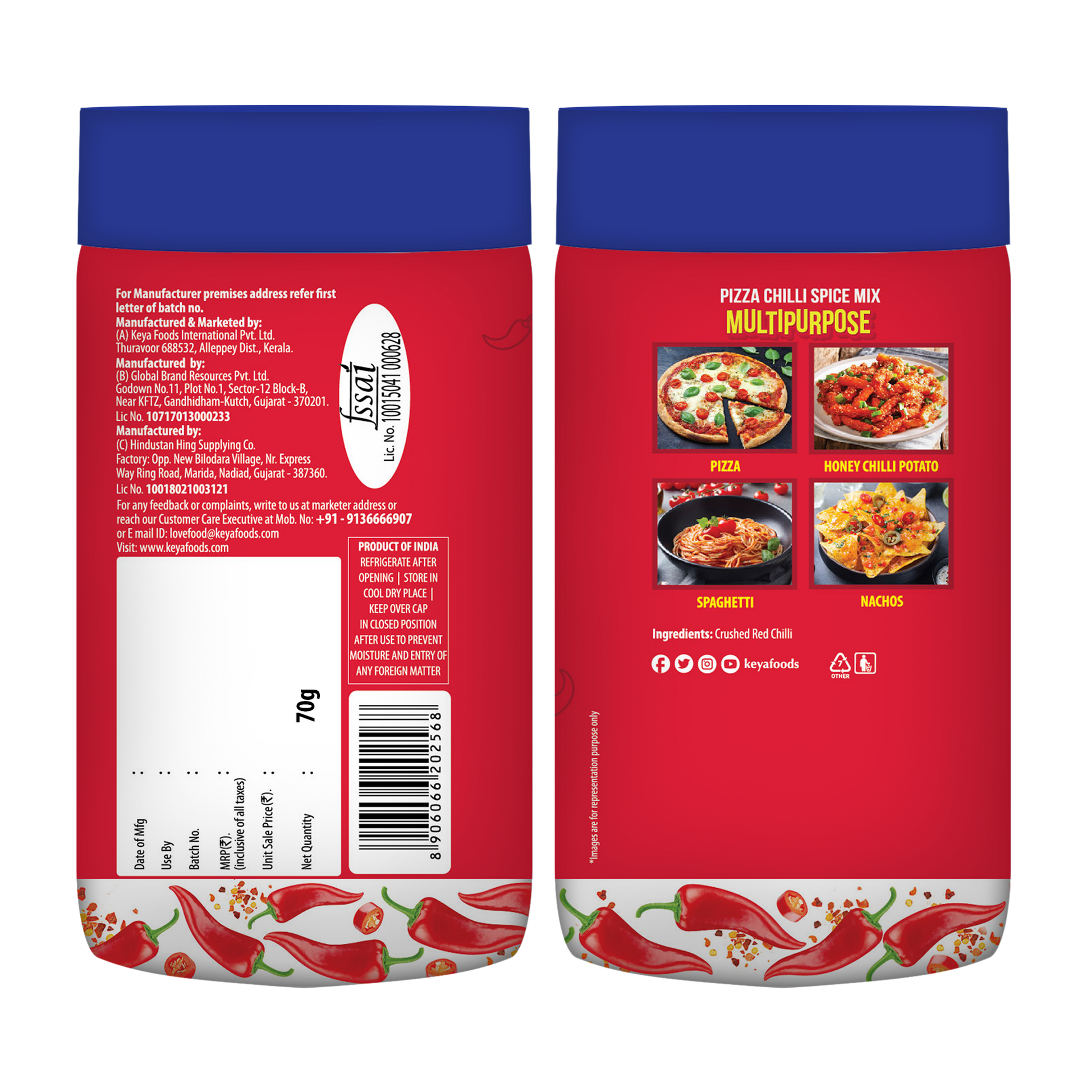 Keya Pizza Chilli Flakes | Natural Chilli Flakes | Dry Red Chilli Flakes| Seasonings |Multipurpose Seasoning| Zero added Colours, Fillers, Additives & Preservatives | 100% Natural | Perfect for Pizza, Pasta, Chilli Potato, Sweet Corn, Makhana| 70g
