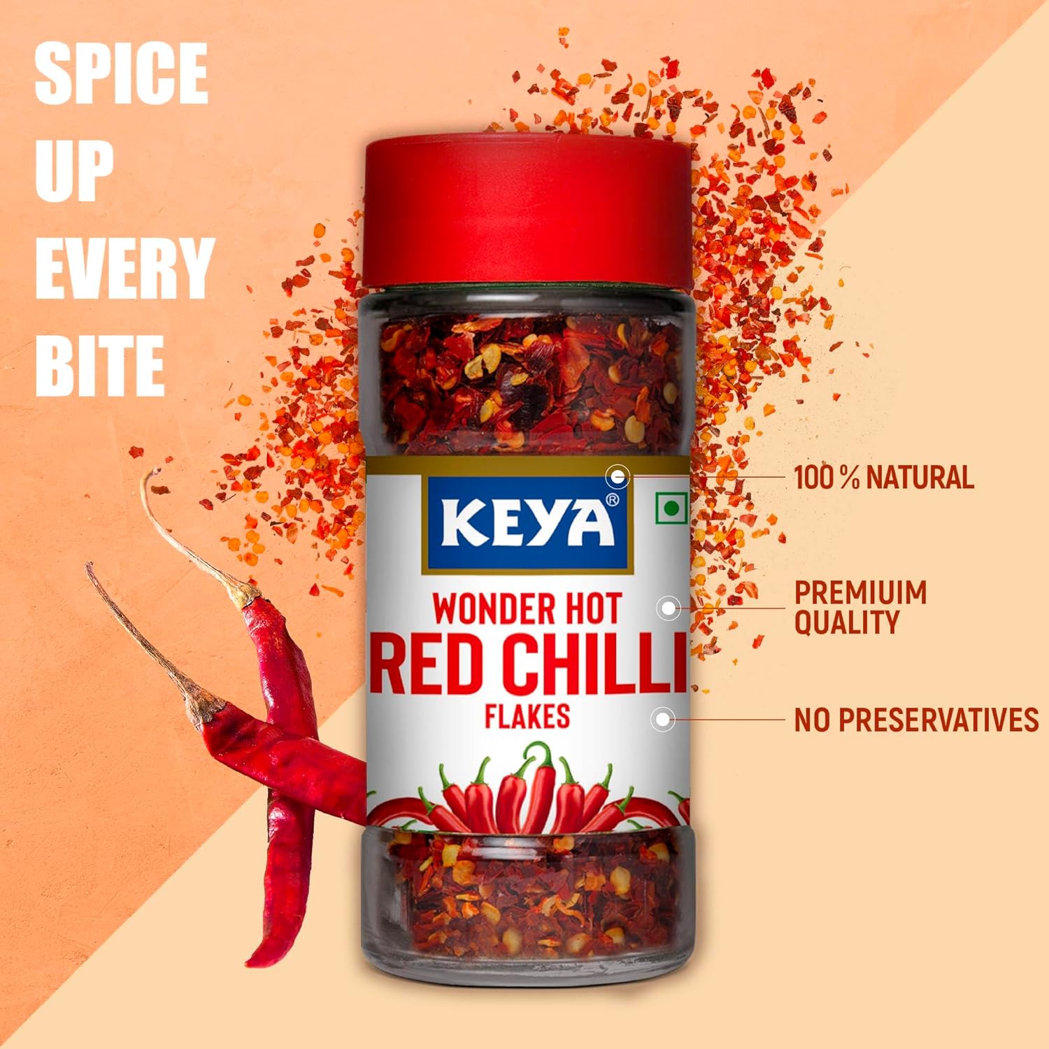 Keya Red Chilli Flakes | Dry Red Chilli Flakes Seasonings | Aromatic Spicy Dried Pizza Pasta Seasoning | Zero added Colours, Fillers, Additives & Preservatives | 100% Natural | 40gm