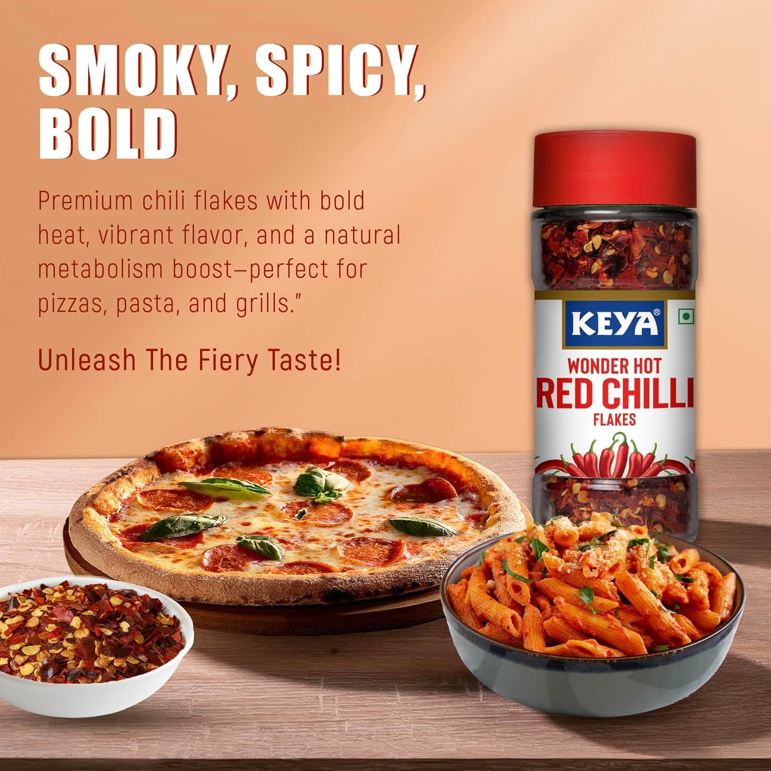 Keya Pizza Chilli Flakes | Natural Chilli Flakes | Dry Red Chilli Flakes| Seasonings |Multipurpose Seasoning| Zero added Colours, Fillers, Additives & Preservatives | 100% Natural | Perfect for Pizza, Pasta, Chilli Potato, Sweet Corn, Makhana| 70g
