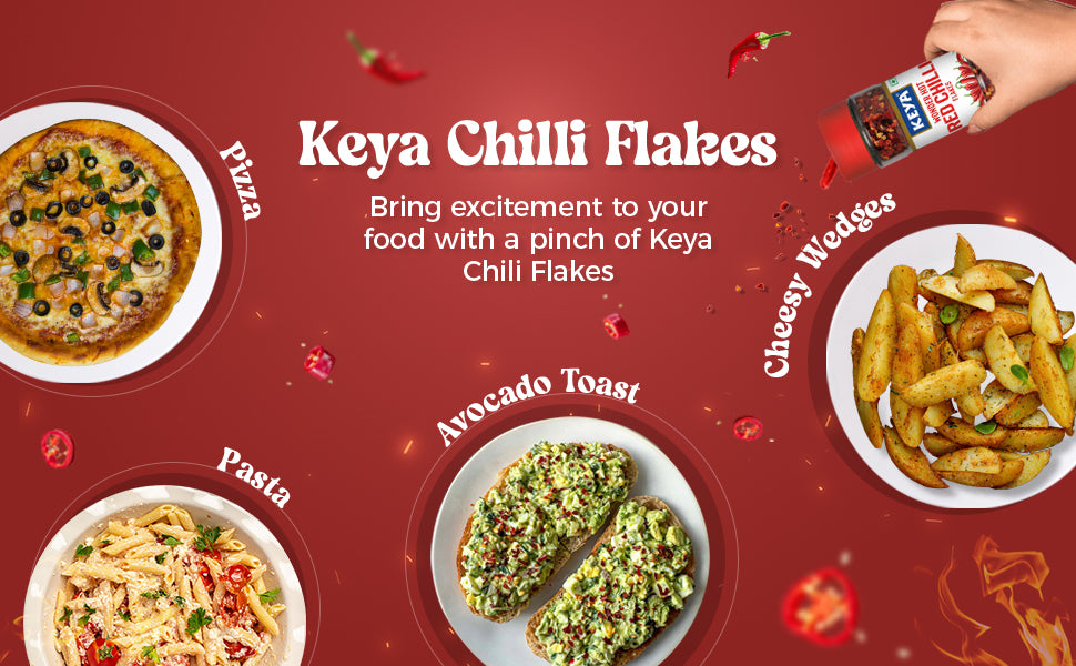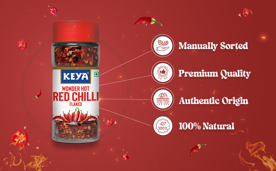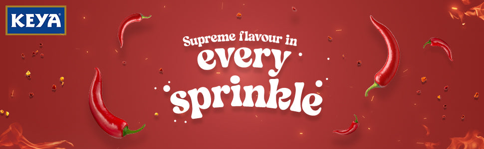 Keya Red Chilli Flakes can be widely used in Indian, Mexican, Thai and Italian cuisine. These are exclusive Hot Red Chilli Flakes from Guntur. Can be used in Savoury Food, including Stews, Creamy Sauces, Pastas, Pizzas, Salads, etc.