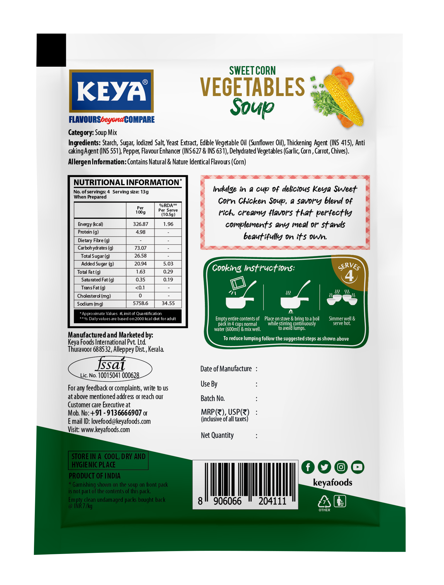Keya Sweet Corn Veg Soup Four Serves 48g